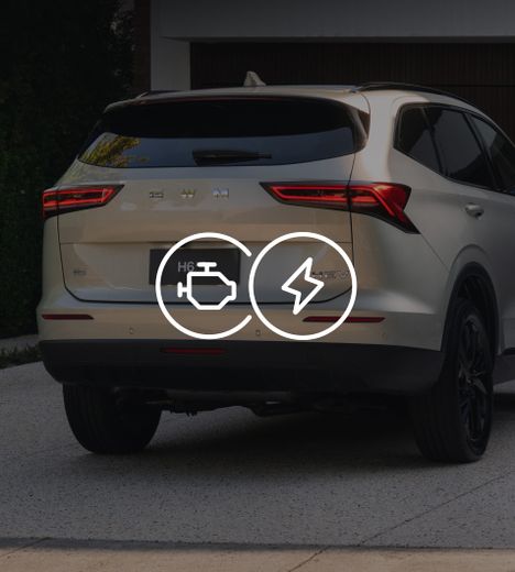 With the Haval H6, move forward with a Self Charging Hybrid or seek the new alternative of electric performance, supported by petrol. Now available as a Plug-in Hybrid (PHEV), the H6 delivers exhilarating performance with an intelligent blend of petrol and electric power, offering greater efficiency without sacrificing power. Plug-in Hybrid EV gives you the best of both worlds — electric drive around town, petrol backup for the open road. That allows you to charge at a time convenient to you. Now that's smart. A conventional petrol engine option is also available on certain models.